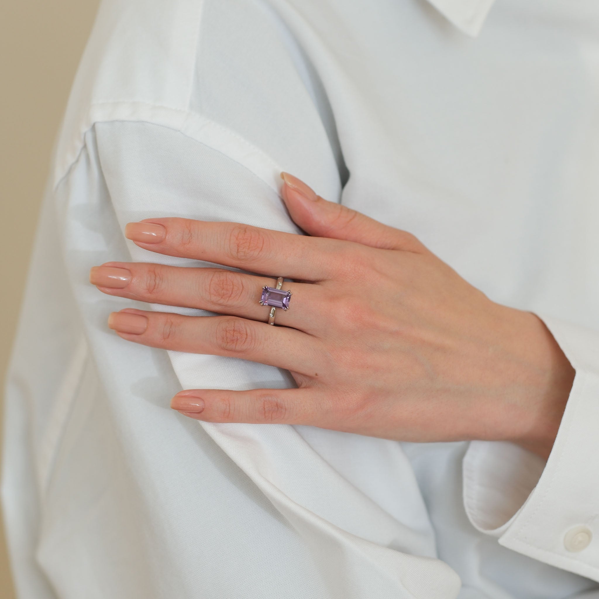 個性豊かな大ぶりのセンターストーンが主役のリングコレクション。それぞれの宝石が持つ美しさを引き立てるよう、アームをデザインしました。デイリーな装いのアクセントとして、スタイルを印象づけます。※宝石とアームを自由に組み合わせてお仕立てすることができます。詳しくはお問い合わせください。