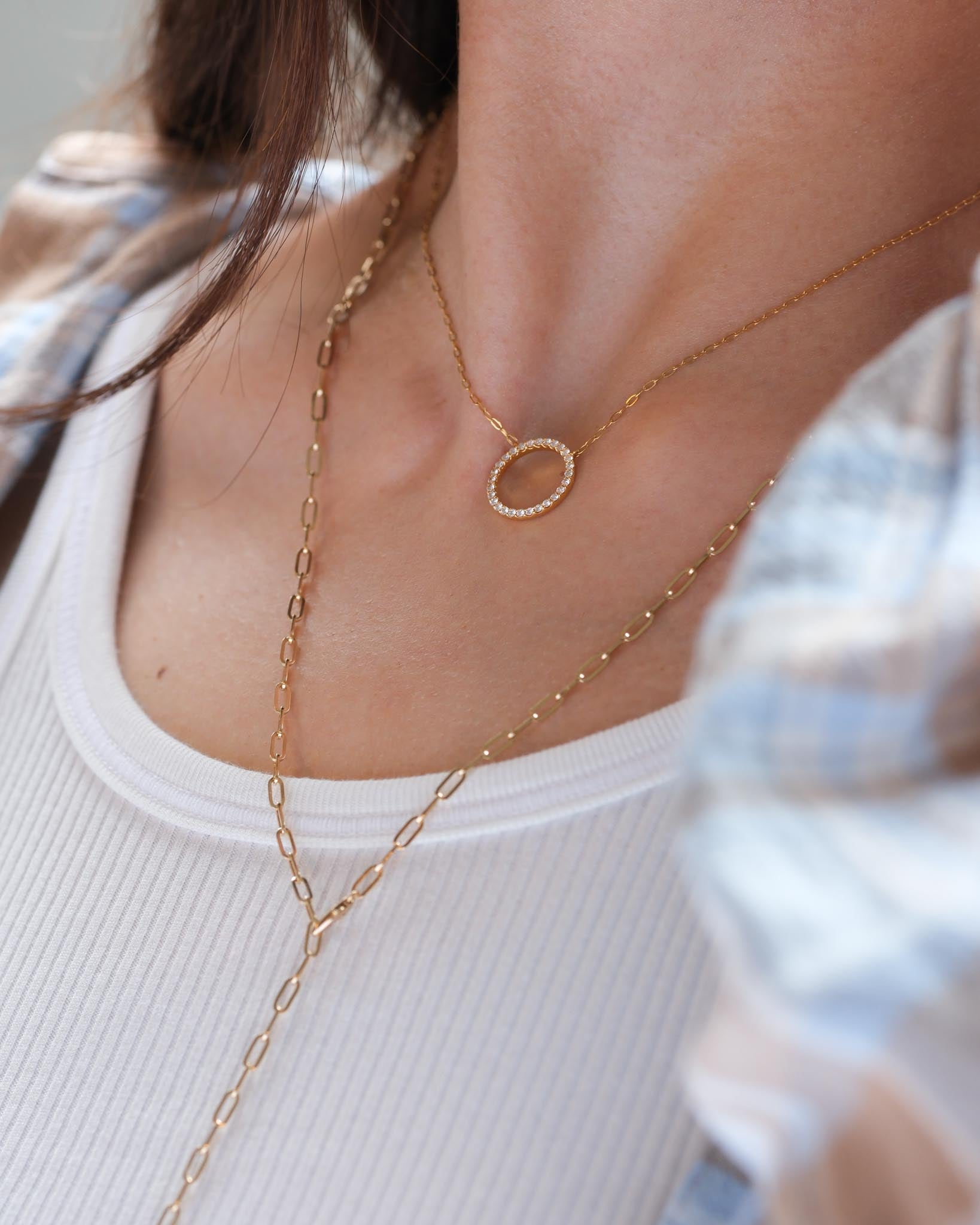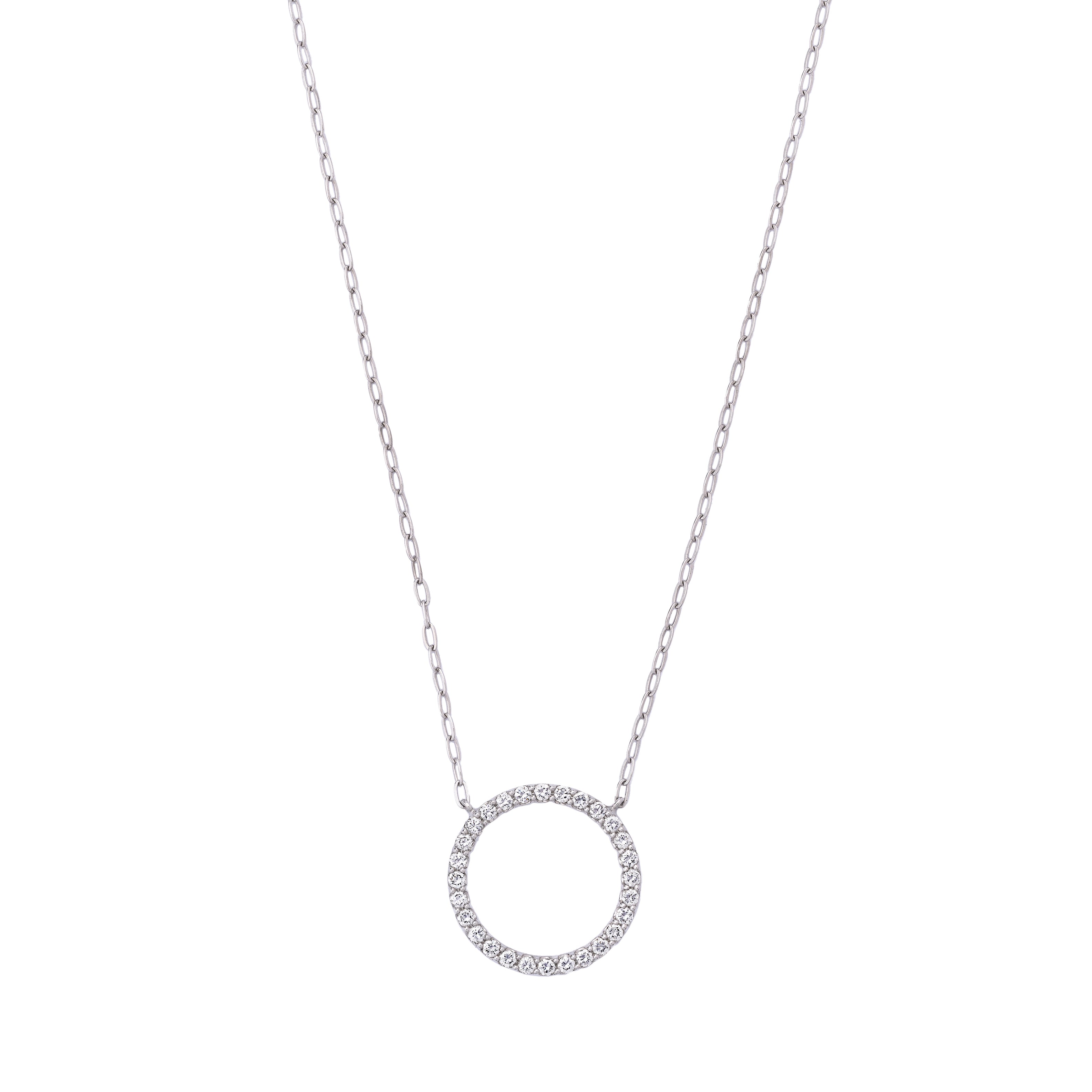 ダイヤモンドのきらめきと軽やかなデザインが印象的なネックレス。あらゆるシーンやお召し物に馴染むサイズと、繊細なセッティングで形づくられたシンプルなモチーフが魅力です。ひとつでも十分な華やかさですが、お手持ちのネックレスやチェーンと組み合わせてお使いいただくことでコーディネートの幅が広がります。
